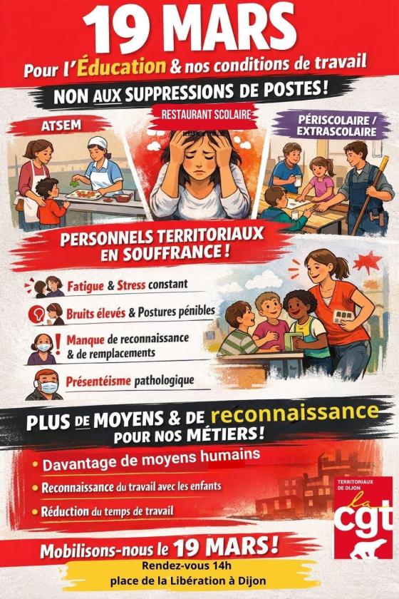 Dans le cadre de la mobilisation intersyndicale du 19 mars pour la défense du service public d’éducation, la CGT des…