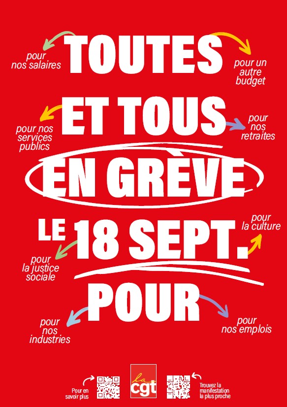 Le 18 septembre : toutes et tous ensemble pour une grande journée de grèves et de manifestations