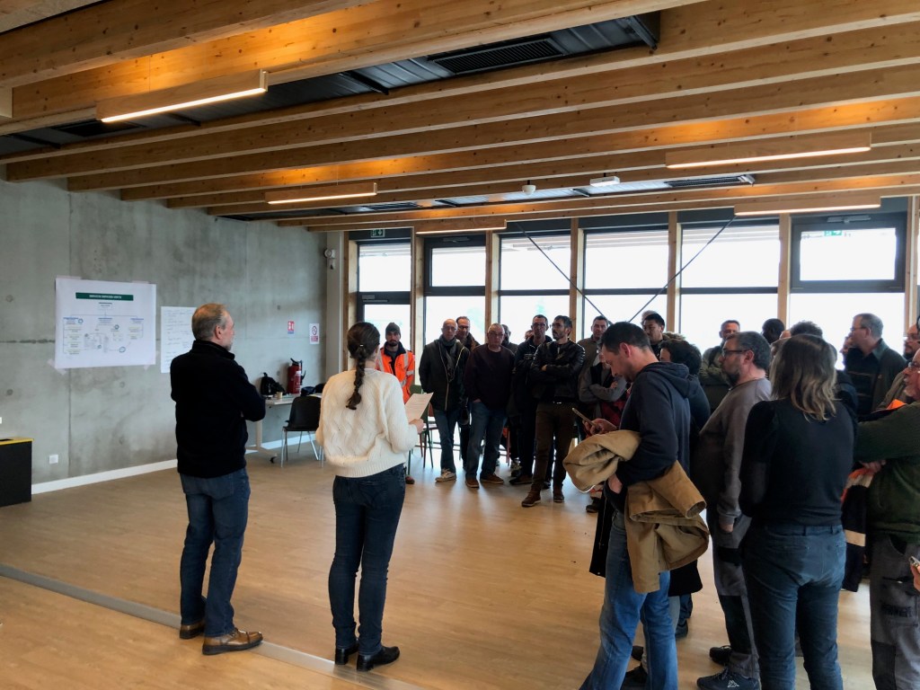Enfin, nous étions présent·es lors de la réunion sur la démarche d’accompagnement des agentes et agents de la direction de l’exploitation : espaces verts, propreté, proximité, centre d’exploitation et d’interventions (CEI), voirie. Les collègues, venu·es en nombre, ont pu découvrir les projets d’organigrammes, de modifications d’horaires et de secteurs.